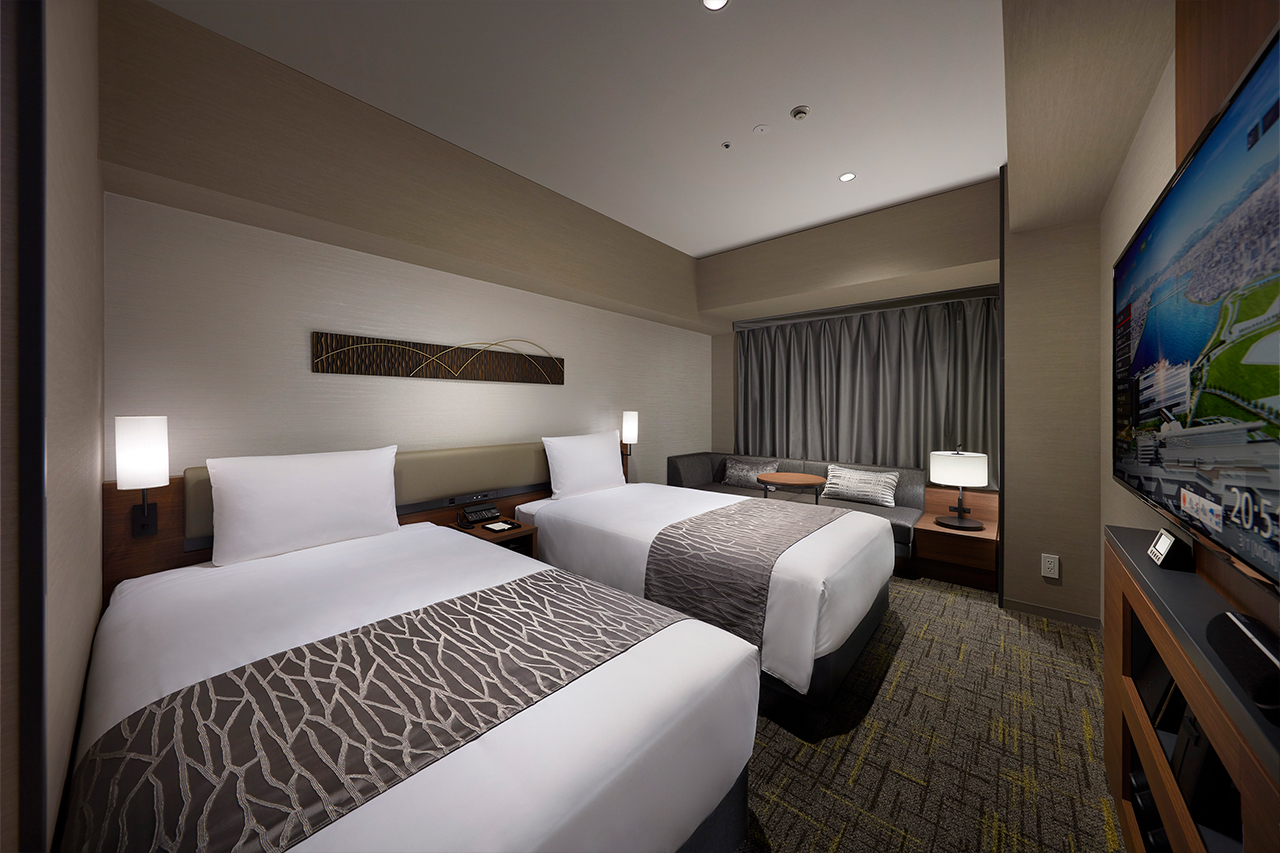 - 部屋タイプはツインベッドのお部屋(23㎡)とクイーンベッド1台(20㎡)のお部屋があり、それぞれ2名様までご利用できます。